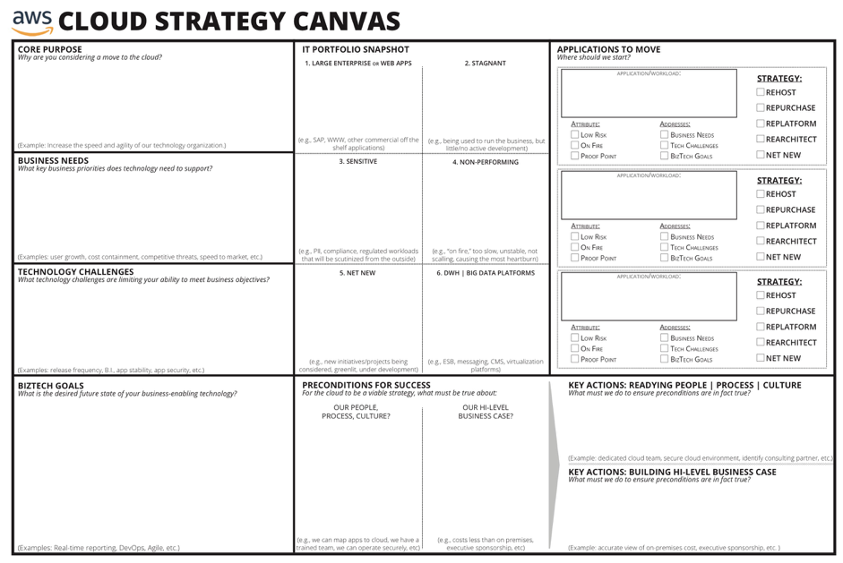 Como ferramenta de estratégia, o Cloud Strategy Canvas é valioso por vários motivos. Primeiro, ele fornece uma estrutura bem pensada, que atua como uma restrição inteligente para promover o pensamento focado.